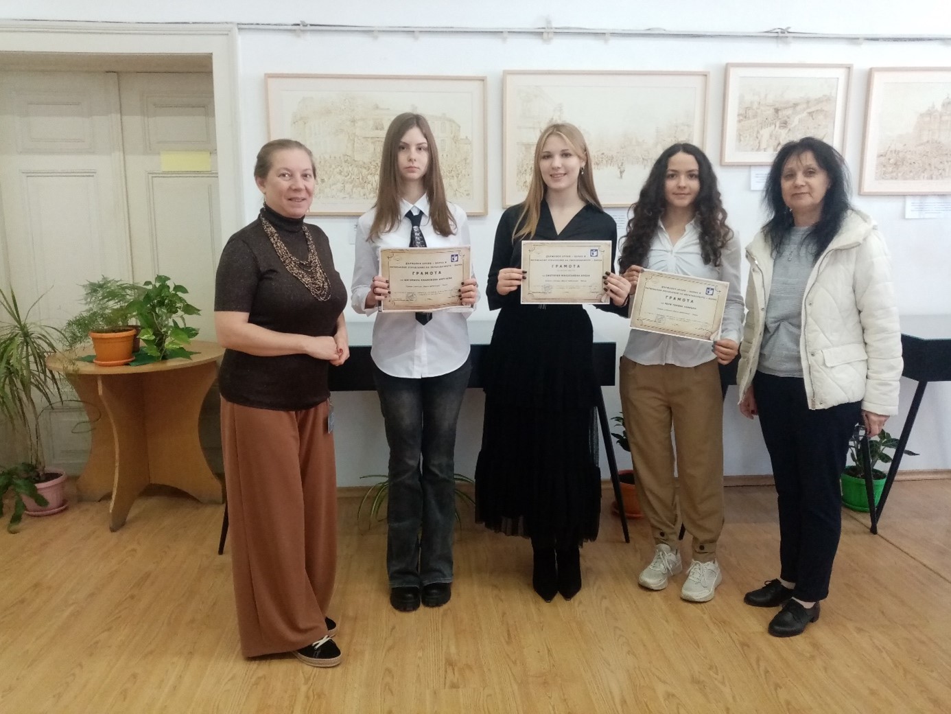 Поздравления за нашите ученици! Изразяваме искрена благодарност към учениците Виктория Миколаивна Акран от ХБ клас– заела първо място във възрастовата група VIII- XII клас, Богомила Пламенова Ангелова от ХА клас и Веси Танкова от ХБ клас, отличени за участие с грамота в историческия конкурс „Личности, оставили следа в моя роден град през страниците на документите“, проведен във гр. Варна на 30.10.2025 г. Учениците бяха мотивирани и подкрепени от г-жа Милена Великова, старши учител по история и цивилизации да откриват историята на своя град. Тяхната отдаденост, труд и вдъхновение не само показаха уважение към миналото, но и доказаха, че родолюбието и патриотизмът са живи в сърцата на младото поколение. С усърдие и въображение те пресъздадоха спомени, събития и разкази, които са неразделна част от нашата национална идентичност.