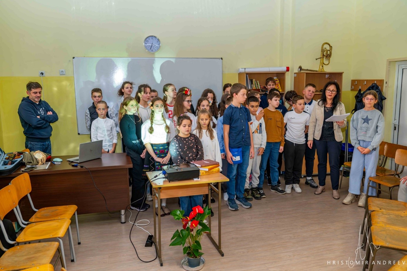 По инициатива на г-жа Милена Великова – старши учител по история и цивилизации и г-н Пламен Желев – учител по музика, в училище се проведе урок по родолюбие, посветен на 1 ноември – Денят на народните будители - денят, в който почитаме делото на великите личности, съхранили българския дух, вяра и просвета през вековете. В тържествения час взеха участие ученици от начален и прогимназиален етап. С вълнение децата рецитираха стихове за будителите, представиха делото на книжовниците, просветителите и духовниците, които със слово и дело са будили съзнанието на народа ни, показаха, че се вдъхновяват от българските възрожденски и народни песни. Поучителни бяха словата за силата на знанието, любовта към родината, националното самоосъзнаване и значението на духовността днес. Заедно с учителите и родителите, които присъстваха на тържествения час, учениците отдадоха почит на народните будители и показаха, че всеки от нас може да бъде будител със своите дела, доброта и стремеж към знание! Ден, в който свеждаме глава пред онези, които с перо, слово и дух осветиха пътя на България. Ден на памет, признателност и гордост! Нека бъдем достойни наследници на тези, които ни научиха да мислим, да вярваме и да обичаме България! „Снимките са направени с любезното съдействие на Христомир Андреев – родител на Габриела Андреева от 5Б клас“